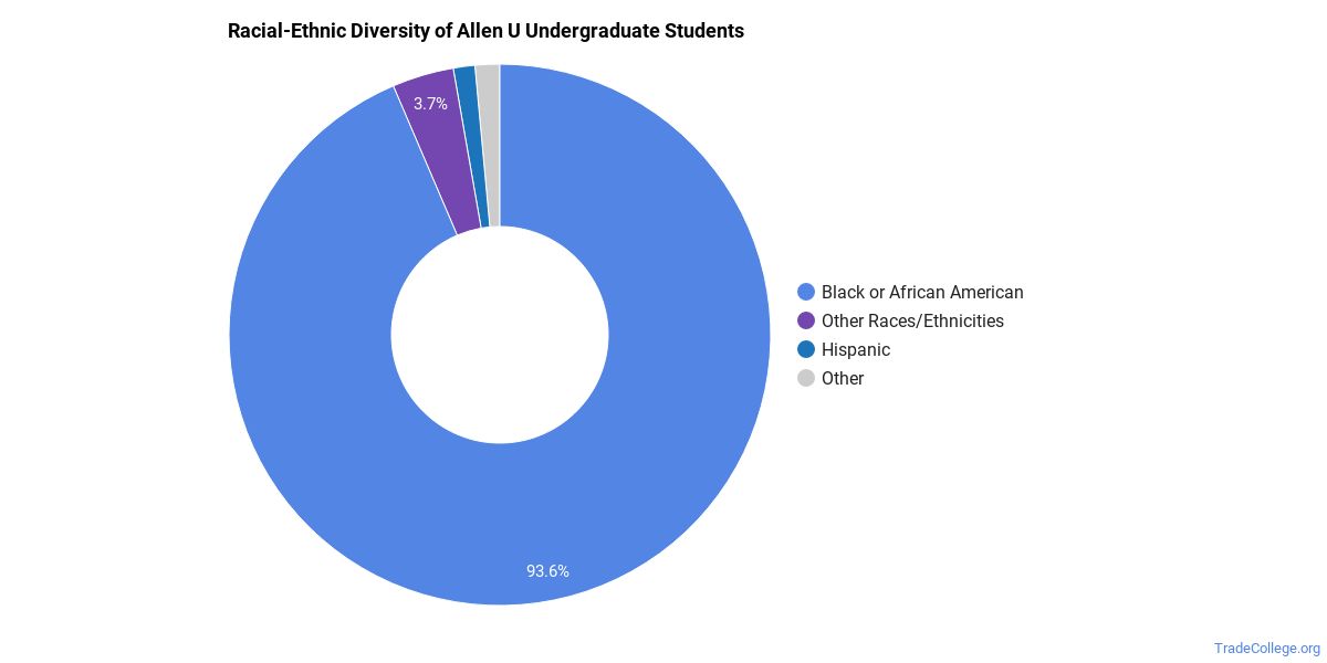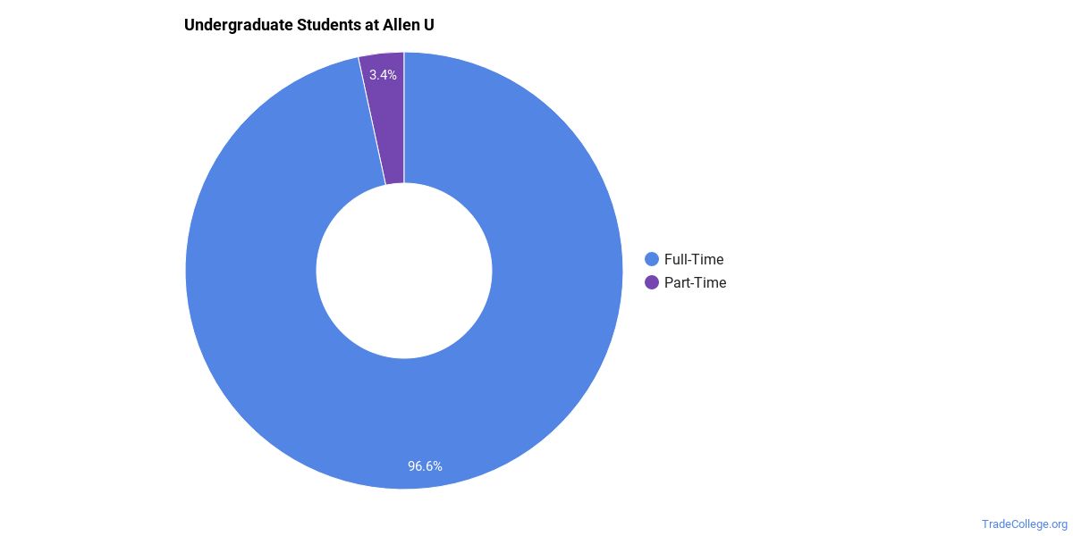Of the 577 full-time undergraduates at Allen U, 55% are male and 45% are female.
