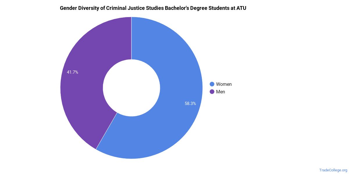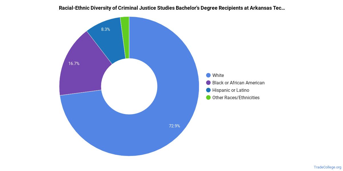 About 73% of those who receive a bachelor's degree in criminal justice studies at ATU are white. This is above average for this degree on the nationwide level.