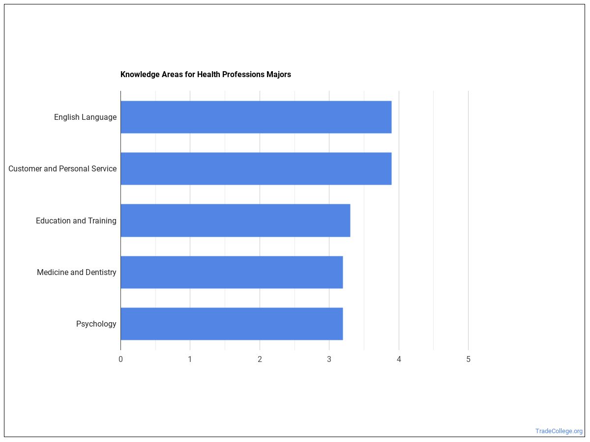 O*NET surveyed people in occupations related to health professions and asked them what knowledge areas, skills, and abilities were important for their jobs. The responses were rated on a scale of 1 to 5 with 5 being most important.